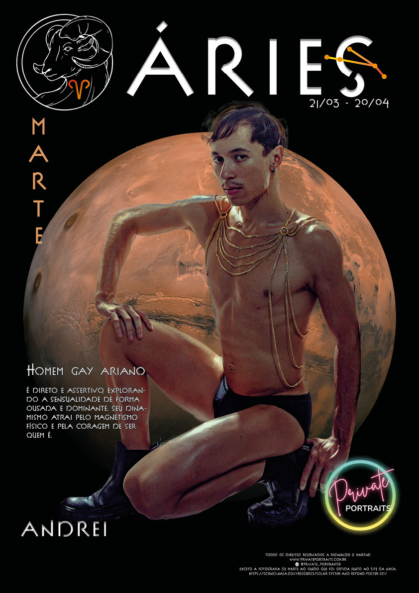 Homem gay de Áries: impulsivo, decidido e apaixonado pela conquista. Gosta de seduzir e ser seduzido com intensidade. Sua energia sexual é vibrante, seu olhar é de desafio e sua presença nunca passa despercebida.