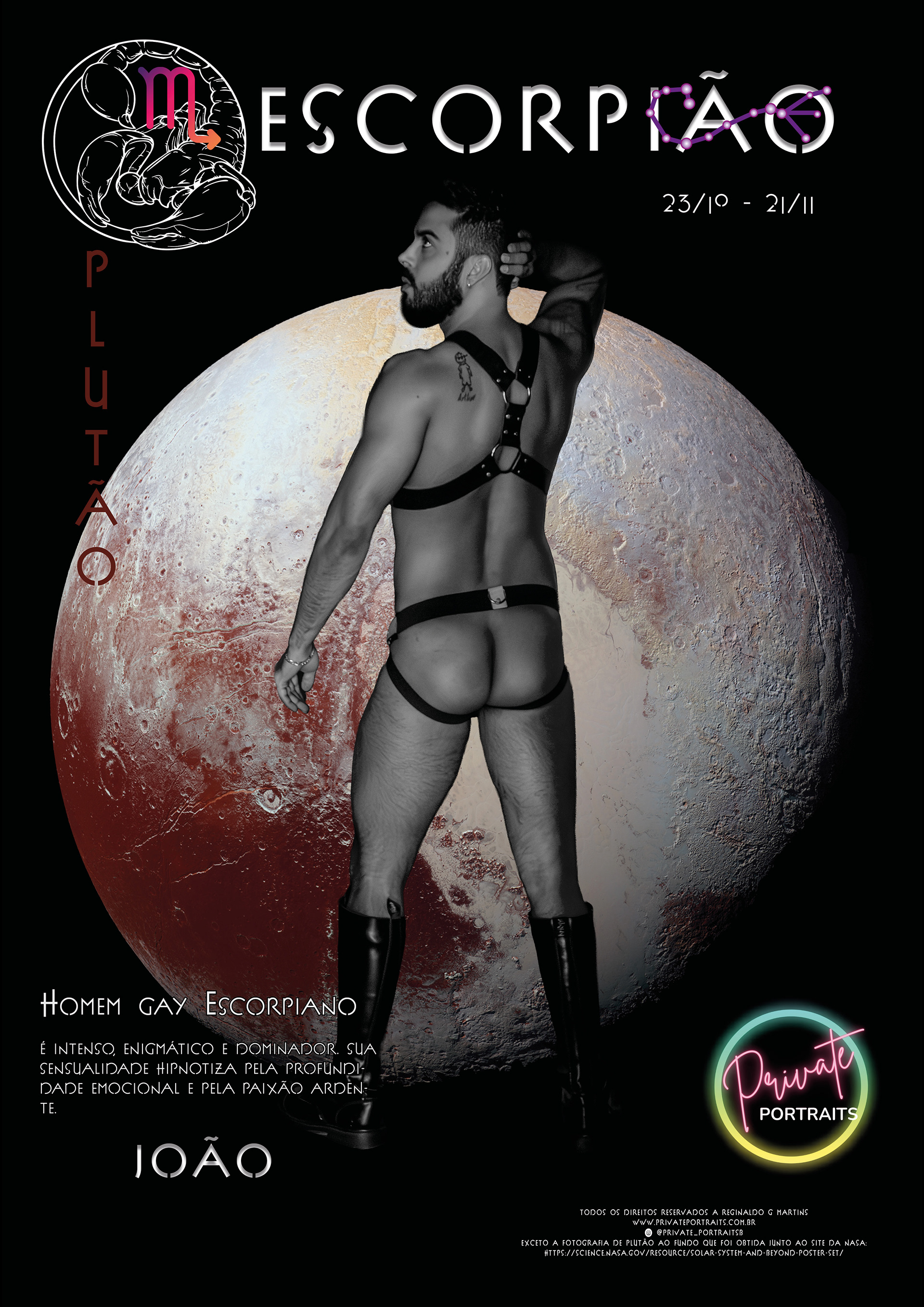 Homem gay de Escorpião: magnético, intenso e profundamente sensual. Vive o desejo como um jogo de poder e entrega total. Sua presença hipnotiza e convida para um mergulho nas profundezas do prazer e do mistério.