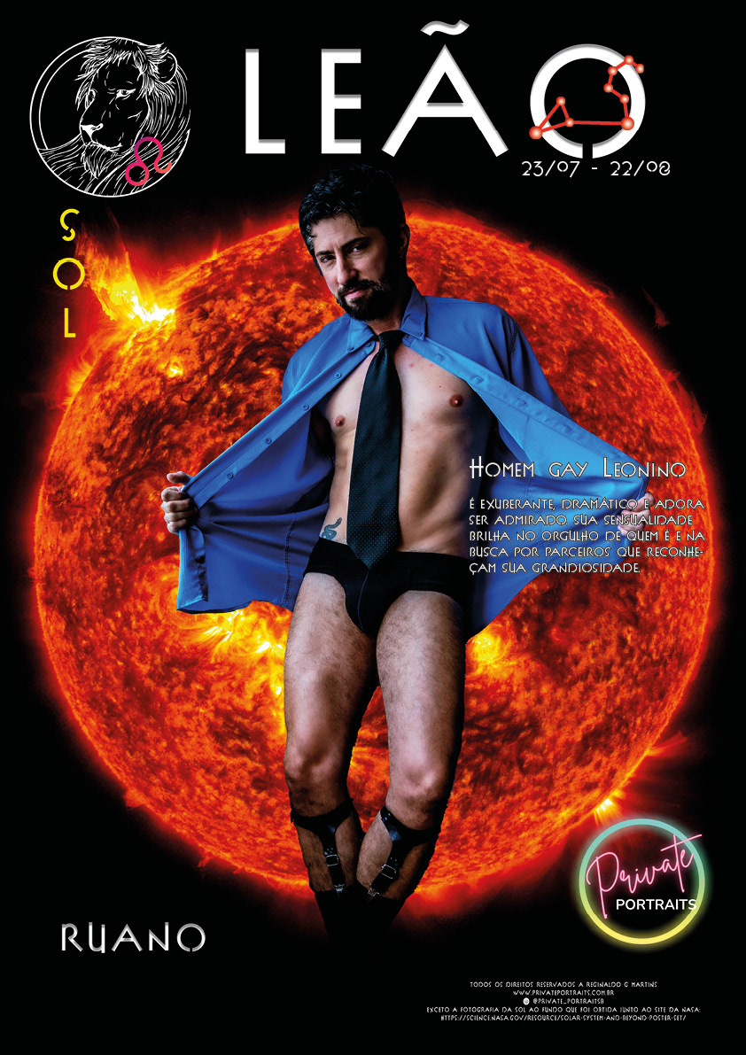 Homem gay de Leão: exuberante, vaidoso e carismático. Ama ser admirado e faz de cada momento uma cena memorável. Sua sensualidade é solar, dominadora e irresistível.