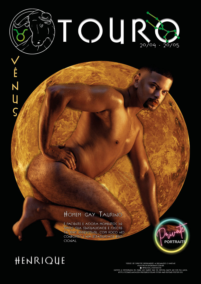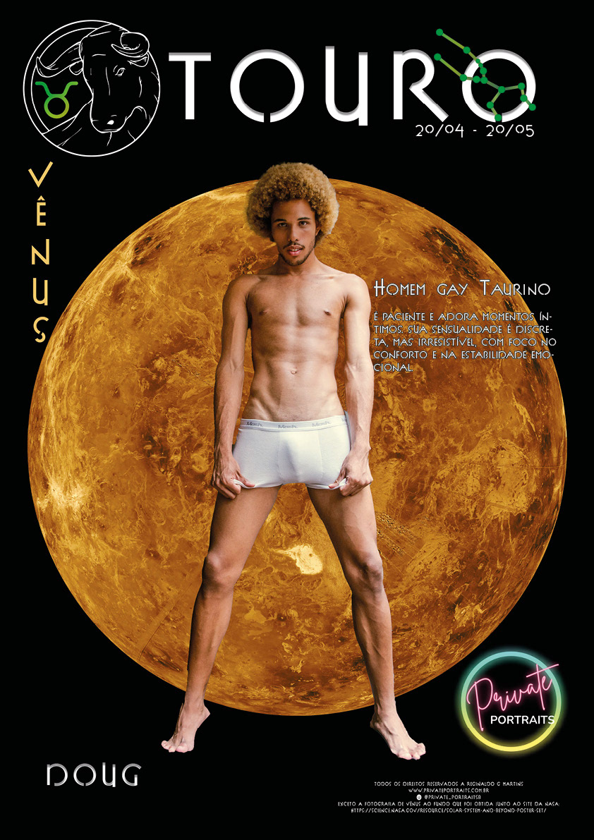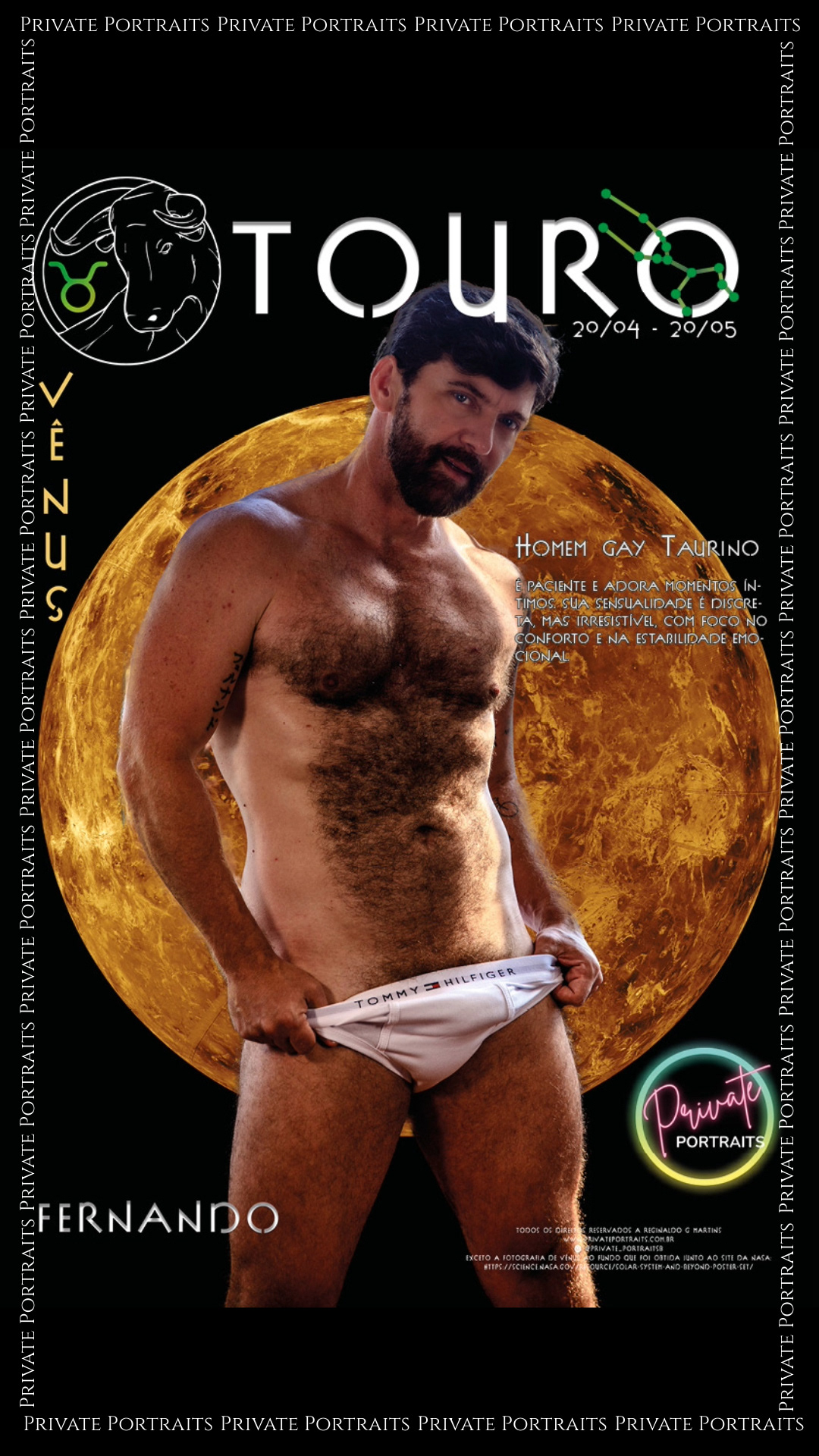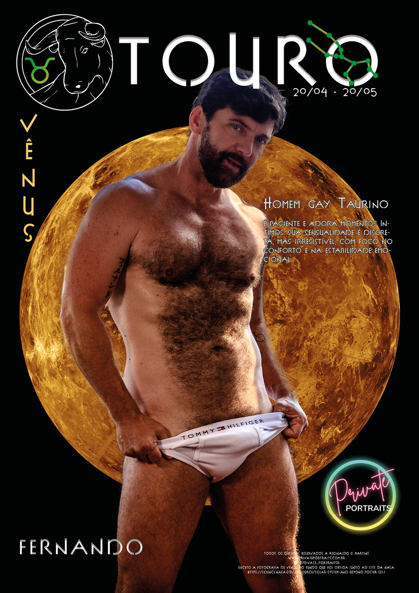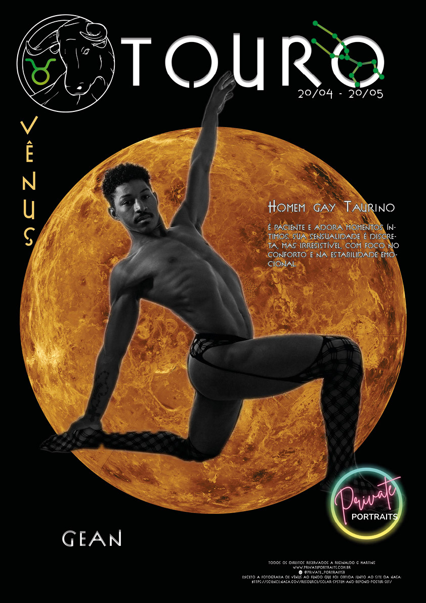 Homem gay de Touro: aprecia os prazeres da vida, do toque ao paladar. É afetuoso, sensual e busca estabilidade nos afetos, mas sem abrir mão do prazer e da estética. Seu charme é natural, seu beijo é inesquecível.